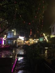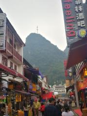 一入阳朔西街,我觉得自己好像在广州行花街,好多好多好多人啊。西街的感觉就是酒吧,夜总会,小吃街,综合的一条街,一步一小吃两步一酒吧,如果你想三五知己小酌一杯,可以到呢到,真的是太多太多了,我觉得还好,挺特别的。