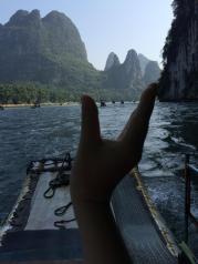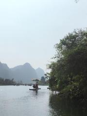 在遇龙河大约漂了一个小时,一路景色优美,两边绿水青山,空气清新,水流比较平缓,真的很好玩,景色好美,师傅很热情,我给了10元小费他,他不停告诉我们那山的“秘密”,也时不时唱山歌我们听,真的很好玩。