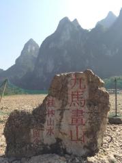 九马画山是一片在漓江中间的地方,其实不是山的形状,是山岩上深色的部分的形状看起来像马。据当地人所讲,能在此处一看看出九匹马的人定非凡夫俗子。周恩来总理,便是其中之一,我一直没有数出9匹马。。。