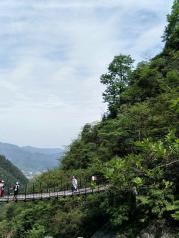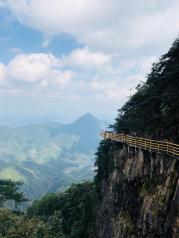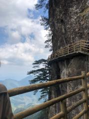 青云栈道在明月山顶右侧,下缆车走路过去大概30分钟左右就到了,如果去明月山没有去青云栈道就等于没有去,险,美,惊。非常不错,不过要注意天气,如果天气不好随时会关闭栈道,建议山底大门口游客中心购买门票的时候问清楚一下!