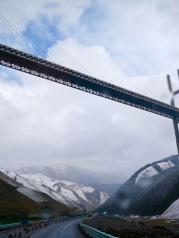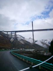 果子沟大桥全称果子沟双塔双索面钢桁梁斜拉桥,桥梁全长700米,桥面距谷底净高达200米,果子沟大桥作为新疆第一座斜拉桥、第一高桥,是新疆最大最重要的桥梁