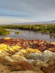 布尔津五彩滩是一个有着神奇地貌的地方,它的特别之处在于一条河流的两边竟然完全不同,一边是郁郁葱葱的小树林,一边是色彩斑斓的岩石,太神奇了!