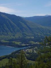 车到车站,还需要爬1068级台阶才可以到达观鱼亭,这里海拔2300米和湖面有600米的落差视觉角度绝对一流,四分之三的湖面尽收眼底,可以从喀纳斯的三弯一直看到鸭泽湖。