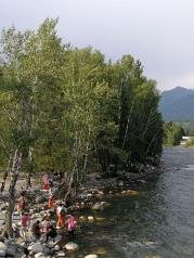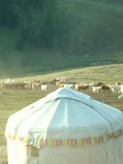 在神的自留地定居,图瓦人也成了神所眷顾的人,这个被称为“云间部落”的民族,居住在喀纳斯湖及附近的禾木、白哈巴等村落里,图瓦人独具特色的尖顶小木屋不规则排列组成了村子,牲口围栏随意地散落在村子的各个角落,牛羊在路边穿行,牧马人在林间扬尘飞驰。白桦林环绕着村子,清澈的绿色喀纳斯河绕村而过,氤氲的晨雾和袅袅升起的炊烟融合在一起,在树林、村庄与大山之间飘荡。