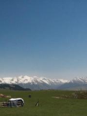 我是5月中旬抵达喀拉峻草原的,草原已是成熟景点,需要购买门票进入有观光车沿途接送,说实话这里的景色惊喜不多,雪山、草地、牛羊马匹、牧人组合形成新疆景色特点。我去的时候胜在天气晴好游人稀少,山花烂漫,草富羊肥。让我们充分享受了一番自由广阔的大自然。新疆幅源辽阔,座车一个景点列另一个景点一天行程是分分钟钟的事