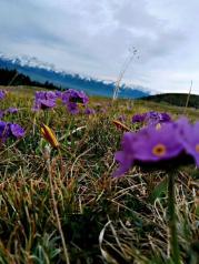 在喀拉峻大草原上随手一拍就能拍到美丽的小花,美丽的花儿点缀着绿色的草原上,非常漂亮。尤其是在雪没有融化的地方长出来的小花,太漂亮了。只有你有一双美的眼睛,到处都是美景。