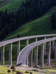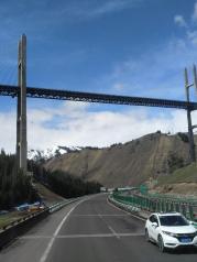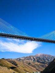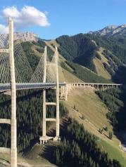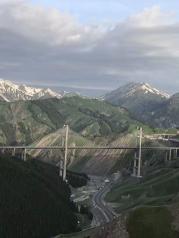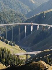 果子沟大桥是自治区公路第一座斜拉桥,也是国内第一座公路双塔双索面钢桁梁斜拉桥。沿途景色优美,令人流连