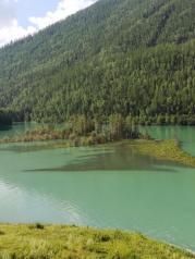 卧龙湾属于喀纳斯景区中的一个小景点,由于形如一个卧龙而得名,旁边的像是一大一小两只鳄鱼形状