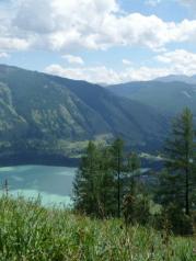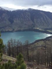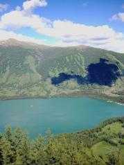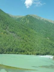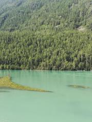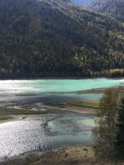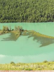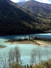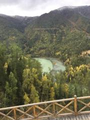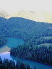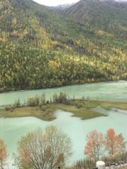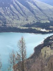 俯瞰喀纳斯湖必须登临观鱼台,山顶景色很好,还可以看到雪山顶白雪覆盖。喀纳斯湖水的中央湖,据说在不同的季节会呈现不同的颜色,真的很奇妙,值得一看。