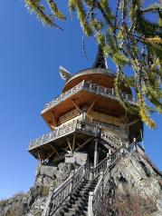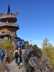 观鱼台位于喀纳斯湖西岸骆驼峰顶上,是俯瞰喀纳斯湖全景的最佳角度,也是为了观湖怪而建的。据说举目北望,能清楚地看到阿尔泰山的最高峰——友谊峰。