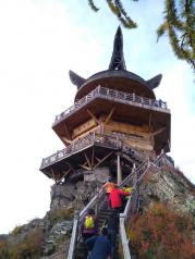不要被喀纳斯观鱼台的1068个台阶所迷惑,台阶是很平缓的,有的是石头台阶,有的是木头的,交错出现,设置多个观景点,攀登不是很累。