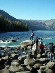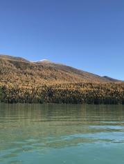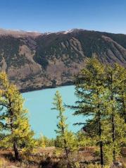可中转去喀纳斯湖,但去山顶观鱼台还要另付车费40元,好象80元车费还不足以支付似的,好霸道!我放弃)。“三大湾”与“一大湖”是喀纳斯的招牌精华景点,依次是卧龙湾、月亮湾、神仙湾与充满湖怪色彩的神秘的喀纳斯湖,区间车也只停这些主要景点,其余皆不停。可惜下午观景时全是逆光,而且树木的秋色还不浓,仍是初秋景象。