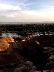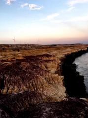 大美新疆【五彩滩】位于布尔津县城以北24公里,额尔齐斯河自东向西缓缓流淌,南岸是密林山谷,郁郁葱葱,北岸是怪石纵横,五彩斑斓。大自然的鬼斧神工,将这些景象完美的融合在一起。夕阳西下,山峦逶迤,流水潺潺,光影斑驳,风车摇曳,犹如一幅幅美丽的画卷展现在眼前!