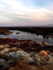 在黄昏的时候来到五彩滩,立刻被眼前的景色惊呆了。开始还以为对岸的那一片树林是五彩滩,走近才发现这里的石头太美丽了。夕阳西下的时候,五彩斑斓的石头真是太好看了,还有那条唯一流向印度洋的额尔齐斯河以及河上的铁索吊桥,真是一个令人难忘的地方。