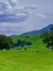 新疆那拉提大草原太美了 天空草原可以看一整天 那拉提草原位于楚鲁特山北坡 包括周围草原、赛马场等众多景点 生长着茂盛的细茎鸢尾群系山地草甸