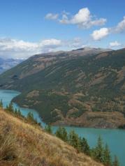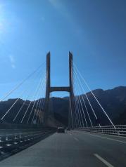 果子沟大桥从赛里木湖往伊梨方向开车大约半小时,远远就看见横卧在天山峻岭间,雄伟壮观!这样浩大的工程体现了中国造桥技术的先进,它的开通促进了当地的经济繁荣,功不可没。