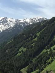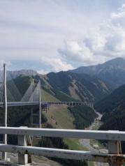 去果子沟大桥,桥上是不让停留的,不过还是有很多人停车拍照!大桥跨在山间,远处可见皑皑雪山,景色感觉甚是雄伟!温度不高,因为雪山,风里凉凉的感觉……