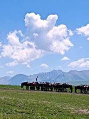 那拉提草原,伊宁到那拉提可以在客运站坐车,但是班次较少,车票不是很好买。可以先买到新源,再从新源转车到那拉提。如果是从乌鲁木齐坐火车早上到伊宁的话,火车站门口就有大巴车到那拉提,车程四个小时左右。那拉提镇不大,路上有小面包车招手即停,随便去哪里就是2元一人,很方便的。
