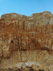 五彩滩是典型的雅丹地貌;岩层为红色、土红色、浅黄和浅绿色的砂岩、泥岩及砂砾岩,五彩缤纷,奇形怪状,富有迷幻色彩。由于这里地处干旱多风地带,大风起时会发出怪异的声音,更增添了神秘与恐怖的气氛。