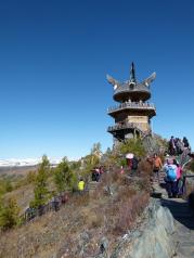 观鱼台位于新疆布尔津喀纳斯景区内,建于海拔2030米的哈拉开特(蒙古语意为"骆驼峰)"山顶上,与湖面的垂直落差达600多米,因处于观察"湖怪"的最佳位置,故得名观鱼亭。观鱼亭是喀纳斯景点中的极品,是唯一一个能驻足饱览喀纳斯美景的最佳平台。很多人来这里,都是“慕名而来”,传说这里有水怪,其实一种大型鲑鱼,叫“哲罗鲑”,最大可以长到2-3米,红色的,很多人眼花了,误认为是水怪,总体上看,站在这里风景不错,不过花上一趟来这里,性价比就不是很高了。