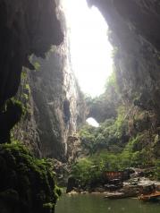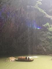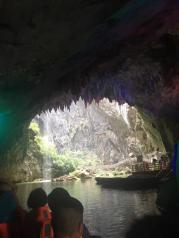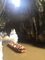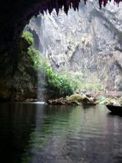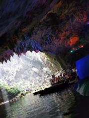 洞天仙境有山有水,洞口有一巨大的钟乳石向下垂吊,山洞口就像龙口,垂吊的钟乳石就是一条龙利,从藤修蔓垂的岩洞口荡桨而入,木桨击破水面的轻微声响惊出数十只燕子,在众多奇姿怪态的钟乳间穿掠,越发显出洞穴的幽奇。还可以坐坐小船,很悠闲!游完还可以到英西峰林转转!