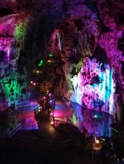宝晶宫内有一百多个石景,石笋、石柱林立,石花、石幔千姿百态,石钟乳玲珑剔透,以其“雄”、“奇”、“壮”,更有“岭南第一洞天”之称。景区很干净明亮,一层的岩石比较多和形状较好看,路很宽,水很净,早点来能看到山水倒影,薄薄雾霭笼罩着山峦,可以慢慢欣赏。