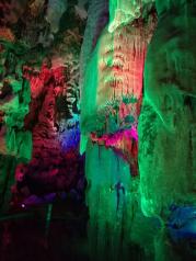 宝晶宫内部的景观非常美,第一层最大,观赏性最好,洞内温度18度,大热天也要穿长袖哟,冬天可暖了,非一般的感受。第二层爬190多级楼梯是休息平台,温度升到20多度,第三层爬300多级楼梯溶洞较小。此外,宝晶宫外面河道上海鲜船的河鲜不错,价格也不贵,值得推荐,令人流连忘返!