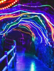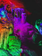 地下大峡谷溶洞里头太凉了,而且很狭窄,人又多,基本上都是走马观花。 形状各异的钟乳石,用灯光一照,五颜六色。
