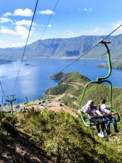 1.泸沽湖最美的女神!格姆女神山,这座山是泸沽湖的标志,同时也是泸沽湖最美的女神。我曾经尝试着不坐缆车或者是索道直接登到山顶。但是看了许多的攻略都没有人能够走上去,除非是玩户外或者是越野的,还要借助很多的工具。于是放