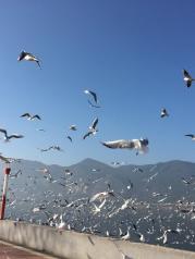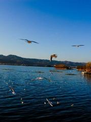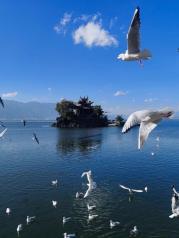自驾滇池喂海鸥,滇池门票免费,吃完早餐去海埂大坝喂海鸥,滇池大坝就在海埂公园附近,一路沿着大坝会看到很多海鸥,成千上万只在你头顶上飞翔~,多到我都好怕海鸥会啄到我.交通路线:昆明站打车过去30分钟,大概元可以到。坐公交