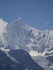 明永冰川是位于云南南和西藏交界处,藏族的神山之一,梅里十三峰非常壮观,明永冰川是梅里雪山的景点之一,海拔很低的冰川,没有高反。冰川从主峰下来一直到澜沧江江边上,如同一条银龙飞扑而来,很是壮观,因时间原因,没有能走到冰川边上,只是远处拍照了。