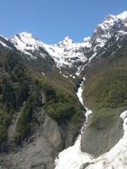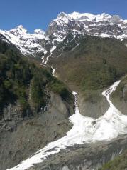 到了飞来寺已是傍晚,第二天上午去明永冰川,包车150元,一个小时就到了,门票78元,我在网上买的是联票,门口可以买电瓶车票送到步道,我更愿意徒步观赏,往返16公里,看到了明永冰川上到了最高的观景台,耳边不时的传来冰川断裂发出的巨响,冰川竟然是灰黑色的,大概是因为海拔还不够高吧,我俩全程徒步加观赏四个半小时。