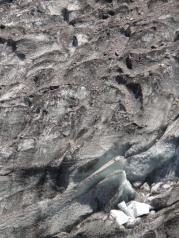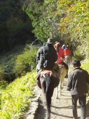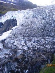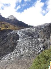 我们两个旅游中巴去的梅里雪山,到了后分成两队,一队去了雨崩村,我们来了明永冰川,明永冰川是卡瓦格博峰下其中一条长长的冰川,山顶冰雪终年不化。上山有两种方法,自己走或骑骡子,当时我们的价格是150来回,我们一车人都选择了骑骡子,因为导游说我们自己走要四个小时,而且怕有高原反应,我们发现全负武装把自己包裹起来,骑着骡子上山挺有意思的。碰到去看冰川的桥塌了,我们只能看到整个冰川冰已融化的差不多了,冰很少,有的地方只露出石灰样的岩石。