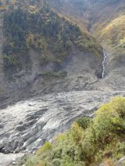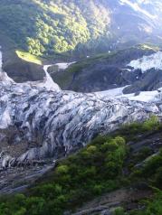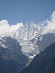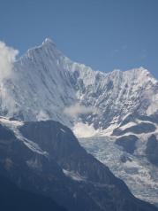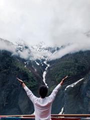 明永冰川位于梅里雪山主峰卡瓦格博峰山脚下,是梅里雪山景区的主要景点之一,我们是骑骡子上明永冰川, 下马徒步登上栈道去到几个观景台。观景台离冰川贴得很近,可 以清楚的看见冰川全貌。下山的时候,我们忽遇冰崩,只听见空中突然几声巨响,不知发生了什么,愣头愣脑的寻声望去,却见远处大小冰块崩裂后迅速冲向山底。后来才知这是冰崩。
