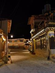 独克宗古城位于香格里拉东南方,据说建于唐代很古老。石板路表面都磨得很光滑的样子,建筑以藏式木屋为主,有的发黑很古老,有的是翻新的发黄。目前,建筑多为商店或客栈。山上有个巨大的转经筒,夜晚好看极了!