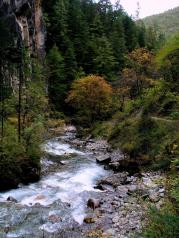 巴拉格宗大峡谷的生态环境保护得很好,漫山遍野,郁郁葱葱的冷杉和云杉,海拔相对较高。走进峡谷,犹如走进一条蜿蜒曲折的深巷,峡谷最宽处20米,最窄的地方仅10余米,若留意观察,峭壁上隐约还能看见雕刻着粗犷的岩画,而这些都是古代村民迁徙时留下的符号,难解其意。 随缘看世界