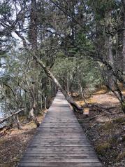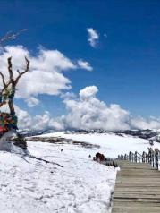 普达措国家公园四月初去的,时间不太好,花都没开,山上还有部分积雪没有化。现在三个景区只开放了属都湖景区,剩下两个在维护中没开放。到了景区先是景区接驳车开大概二十多分钟,然后走湖边栈道三点三公里,如果不想走可以付费坐船,五十块钱一个人。
