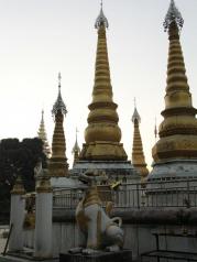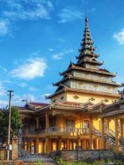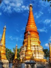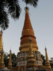 姐勒金塔位于史迪威公路上,从芒市出发到瑞丽,过了独木成林就是大金塔。去的赶巧遇上当地村民新修的莊房建成,举行了盛大的赶摆节庆,又唱又跳,好不热闹。