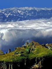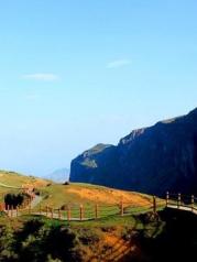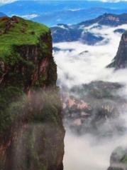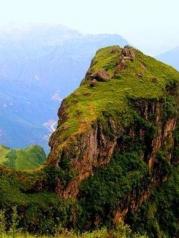 雄奇险峻的鸡公山,屹立在这片荒原上,三面绝壁的高山,型如鸡头,因此得名。鸡公山地势险峻,其间深不可测的峡谷和悬崖峭壁是这里险象环生。居高临下,整个大峡谷云海茫茫,如临仙境,令人叹为观止。