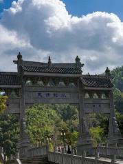 我登上右手边的金鸡峰灵仪寺,这里可以远观金鸡峰丛,听说每年的2月份,到这里来的游客摩肩擦踵,小小的金鸡峰上,有几万人同时在山上拍摄和观景。抵达山脚下,进入后就是一座寺庙,观景台处于金鸡峰的小半山腰,距离山顶还有一段距离,从这里看远处的峰从,的确是很有气势,也特别的美。