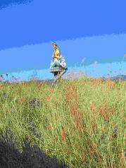 元谋土林是中国乃至世界上一大奇妙的自然奇观,风雨之神把元谋的土地雕琢成了千奇百怪的形状,而看土林只须看它在夕阳和朝晖下的色彩变化即可。可今天的阳光不是很通彻的那种灿烂,夕阳显得有点晕染开来的光线,从而让我见到的土林好像不是那么震撼