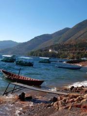 站在禄充地的进入景区口就能俯瞰整个抚仙湖,远眺就能发现发现一颗状如葫芦的明珠,镶嵌在云雾缭绕的万山丛中,美丽至极。尤其湖面上星星点点的小舟漂泊着,随风而摇晃,泛起的波粼晃花了我的眼,乱了我的心。许是淡季吧,人影稀疏,宁静无喧哗,唯有远处的湖面掀起的波涛声传入耳际,好一块安静如世外桃源的地方啊。