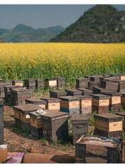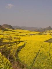 三月,是看罗平油菜花的季节,到了罗平,再次看到大面积的金灿灿的油菜花,仍旧深吸了口气,为眼前一望无际的花海给折服。进油菜花里的小路两侧搭起了棚子,摆几个峰箱卖新鲜的蜂蜜。离开“商业街”,这样感觉就好多了,这里也没有牛车,感觉很舒服