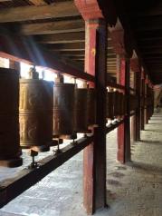 早在来西藏之前,忘记了看了哪一本书曾经提到过桑耶寺和青朴,都是那么清静,神圣,有灵气的地方。有人曾经说过桑耶寺的名称很有诗意,桑耶与上耶相似。进入桑耶寺,顺时针往里走,首先见到的是主殿。著名的三种建筑风格集为一身的主殿。藏,汉,印,三种风格结合,每一种风格都有它的文化背景和历史,那么多年来,传承下来的就是眼前这个有灵气的桑耶寺。桑耶寺也被称为''西藏第一座寺庙''。这一天也是我在西藏这么多天来,第一次感受到佛教的历史文化,感受到佛教的精神,感受到那份心灵的清静。进去后围绕着顺时针走一圈,但内部不能拍照。外围都是转经筒,沿着外围,手转转经筒,看着左边的壁画,历史的痕迹。