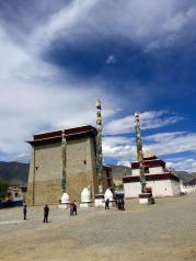 桑耶寺建成于公元779年,是西藏第一座佛,法,僧三宝俱全的寺院,由莲花生大师选址,寂护大师亲自设计,按印度婆罗王朝在摩羯陀所建的欧丹达菩黎寺为蓝本建造。整个寺院的布局,是按照佛经中的"大千世界"的结构布局设计而成,是依照密宗的曼陀罗建造的:乌孜大殿代表世界中心须弥山,大殿周围的四大殿表示四咸海中的四大部洲和八小洲,太阳、月亮殿象征宇宙中的日、月两殿,寺庙围墙象征世界外围的铁围山;主殿四周又建红、白、绿、黑四塔,以镇服一切凶神邪魔,防止天灾人祸的发生。