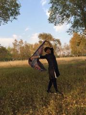 终于到达了张北草原,先拐下河岸欣赏一下河湾风光,再沿着坝顶小路往镇区走去,路上布满了牲畜的蹄印,却鲜有人踪,看来牧人才常走此道。土坝两旁一排排高大笔直的白杨是为了固坝而栽的,远看仍是青绿绿的,近前才发现已有部分发黄。我穿梭于秋之白杨间并居高临下地欣赏着一旁宽广的稻田,不禁愈发兴奋起来,夕阳下的田园越看越是美!