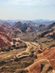 张掖——天气原因远处的山只能看清轮廓,但景色确实还不错,值得一去,我是从张掖汽车站坐大巴去的,一小时一辆,首班9点,到景点坐大巴到四个观景台、一圈下来两到三个小时,就是看景拍照,玩的项目就是热气球和滑翔伞、但是只有6月到10月才有。