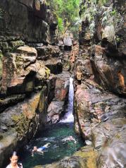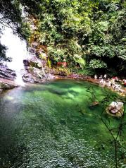 端午节去鼎湖山人多,看不到什么,还是平时来好,但是同程不错,很省心!飞水潭,可以从庆云寺下去,还是要爬上一会的,至于庆云寺,信徒可以略做逗留,烧个香,很大的寺庙,前后上下很多房,飞水潭根据指引走,水很清,适合留影,出来基本就到出口了。