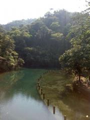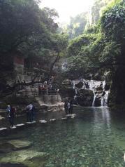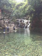 在网上购买的鼎湖山门票,到景点门口用手机刷下二维码就能入场,很方便,赞一个,上到鼎湖上看到的水是蓝色的,非常的好看,不好的地方是整个鼎湖山上没直饮水,很多大巴车在马路上开有点影响安全!环境挺好的,之前去了紫云谷,这里设施比紫云谷好,紫云谷更天然,这里也还可以。飞水潭的水很清澈,真想下去游一会儿,哈哈