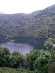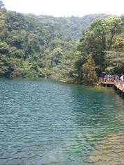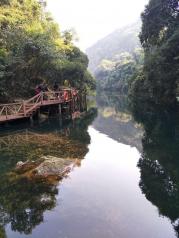 韶关出发去鼎湖山,搞得有点赶,不过景色太美了,蝴蝶谷必去,美不胜收的!进景区大门票78元,接着大巴上山的通程票购买25元一人光靠走的需要好几个小时,到了蝴蝶谷再买45元一人的门票,蝴蝶谷的湖水空气都很好,搭船几分钟就到对岸,看了一下蝴蝶园蝴蝶太少了不值得就进去森林探险,一路空气山泉水景色很美有一些小小的瀑布,人是很舒服,山有些陡注意安全就行,下了山到宝鼎园有九个鼎参观游玩了一下,就搭通程票大巴下山了。